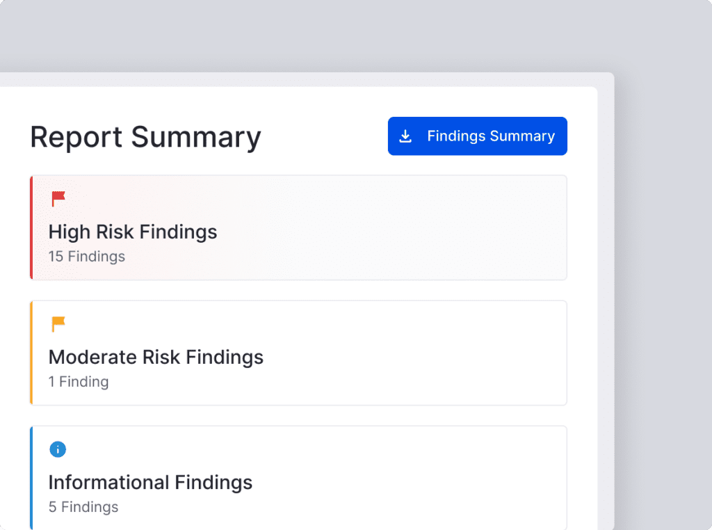 Define your risk thresholds once: Set what constitutes high, moderate, and informational risk based on your organization’s policies. Our platform then surfaces findings that meet those thresholds, so you can focus on high-priority risks without digging through all the data.