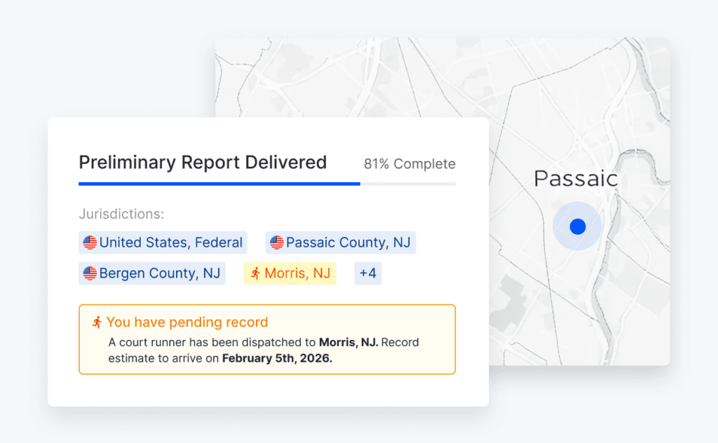 Track investigations in real-time: Access live court runner ETAs as jurisdictions are completed and documents are retrieved.